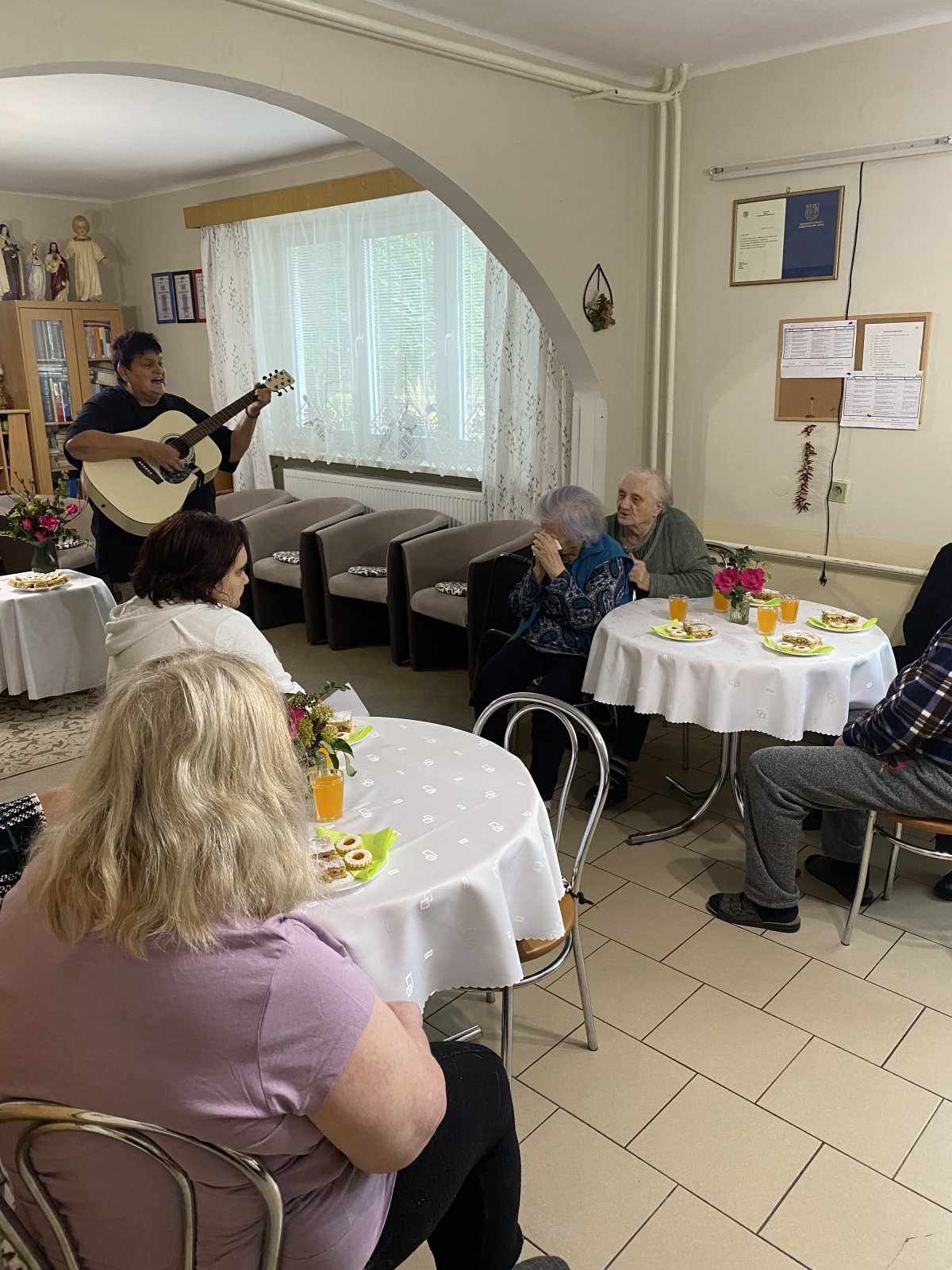 Oslavu otvorila Pako Mária s gitárom , ktorá svojím hudobným vystúpením potešila všetkých prítomných. Naši PSS s nadšením spievali, tancovali a speváčka nezabudla ani na tých, ktorí sa už ťažšie pohybujú – prišla medzi nich, aby aj oni mohli zažiť radosť z hudby a spoločnej oslavy.