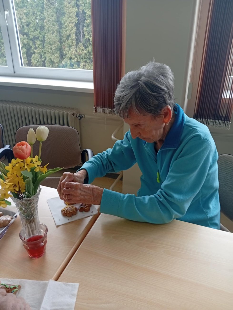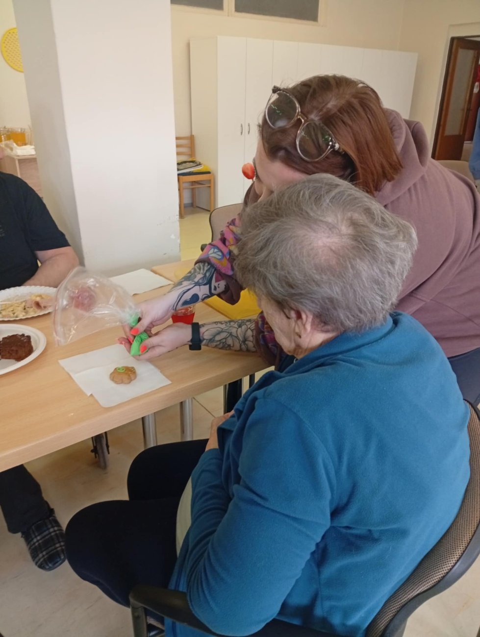 Po vystúpení nasledovalo spoločné posedenie pri občerstvení, počas ktorého si klienti spolu so študentmi zdobili medovníky podľa vlastnej fantázie. Táto časť stretnutia priniesla veľa úsmevov, podporila vzájomnú komunikáciu a prispela k príjemnému medzigeneračnému stretnutiu.
