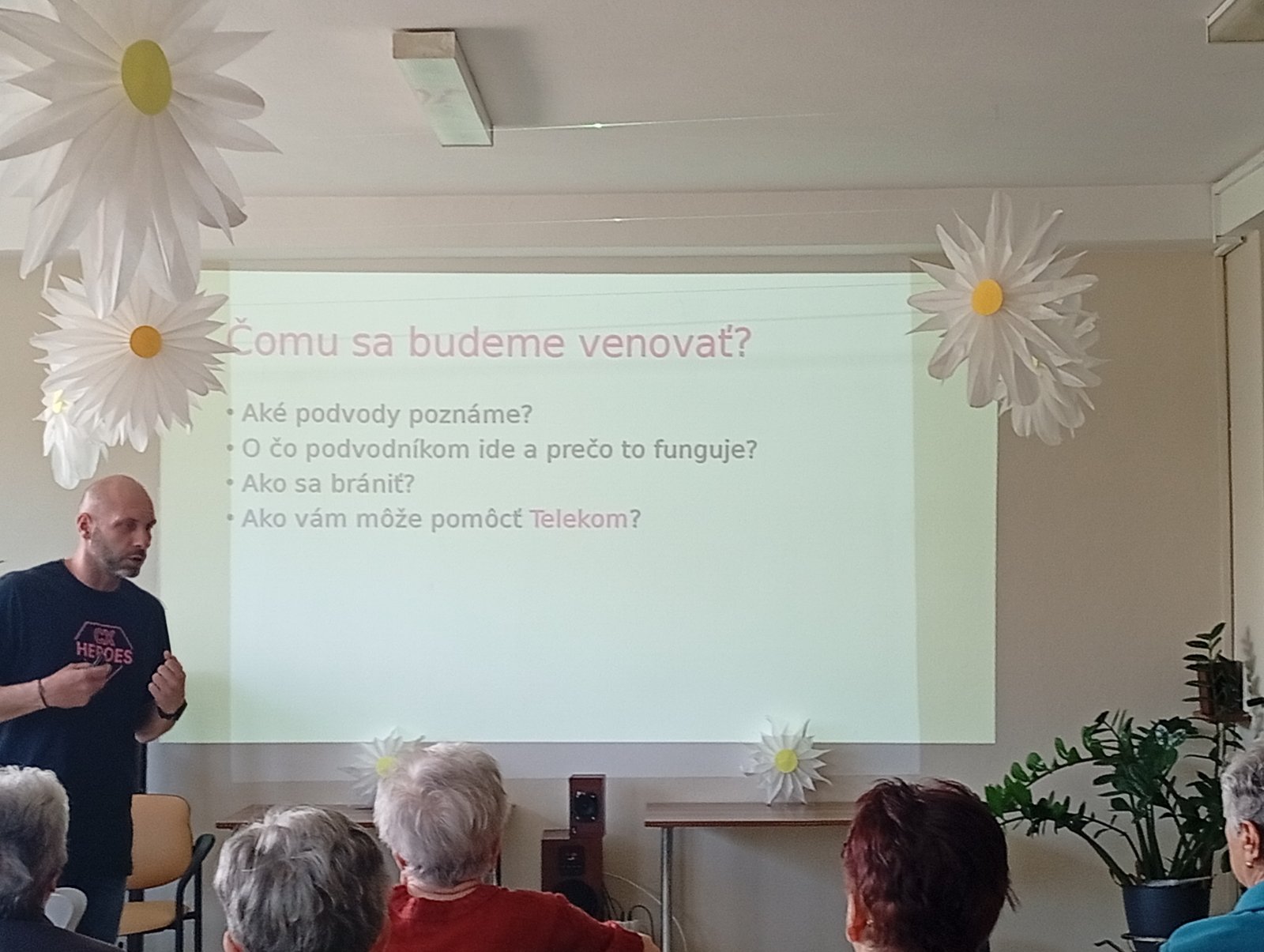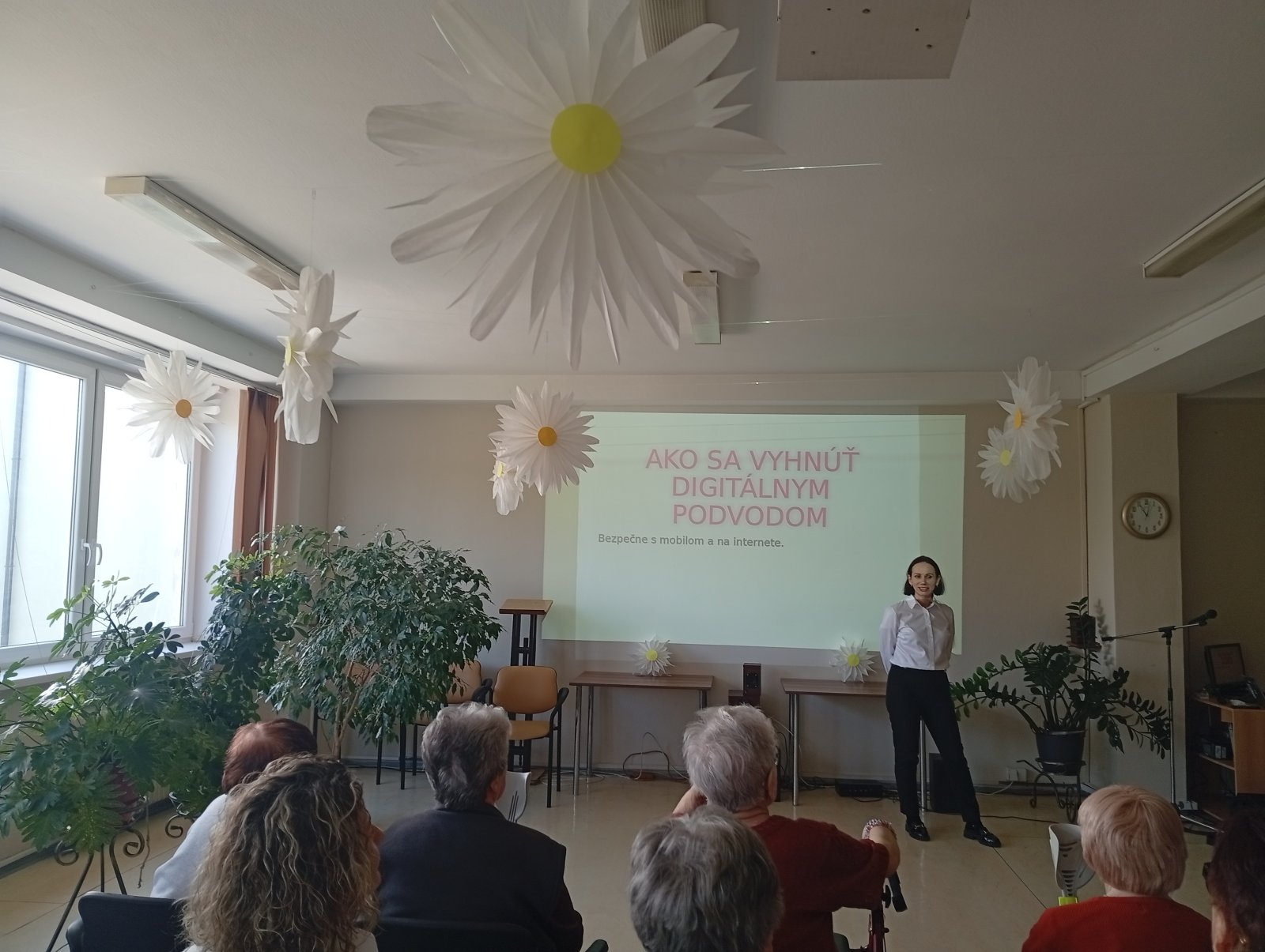 V našom zariadení sme privítali odborníkov z Telekom Centra, ktorí nám priblížili tému digitálnych podvodov. Ukázali, že cieľom podvodníkov je získať citlivé údaje alebo peniaze prostredníctvom falošných správ, e-mailov či telefonátov. Podvody často fungujú preto, že využívajú strach, dôveru alebo naliehavosť. Preto je dôležité zachovať si opatrnosť – nezdieľať osobné údaje, neklikať na podozrivé odkazy a vždy si informácie overiť. Telekom ponúka klientom pomoc aj po prednáške – poradí pri podozrivých situáciách či nastavení bezpečnosti. Stretnutie bolo prispôsobené aj maďarsky hovoriacim klientom, čo ocenili všetci zúčastnení.Diskusia bola živá, klienti sa aktívne pýtali a odchádzali spokojní. Na záver si vymenili kontakty s odborníkmi, aby sa na nich mohli kedykoľvek obrátiť. Najlepšou ochranou pred podvodmi je informovanosť a obozretnosť.